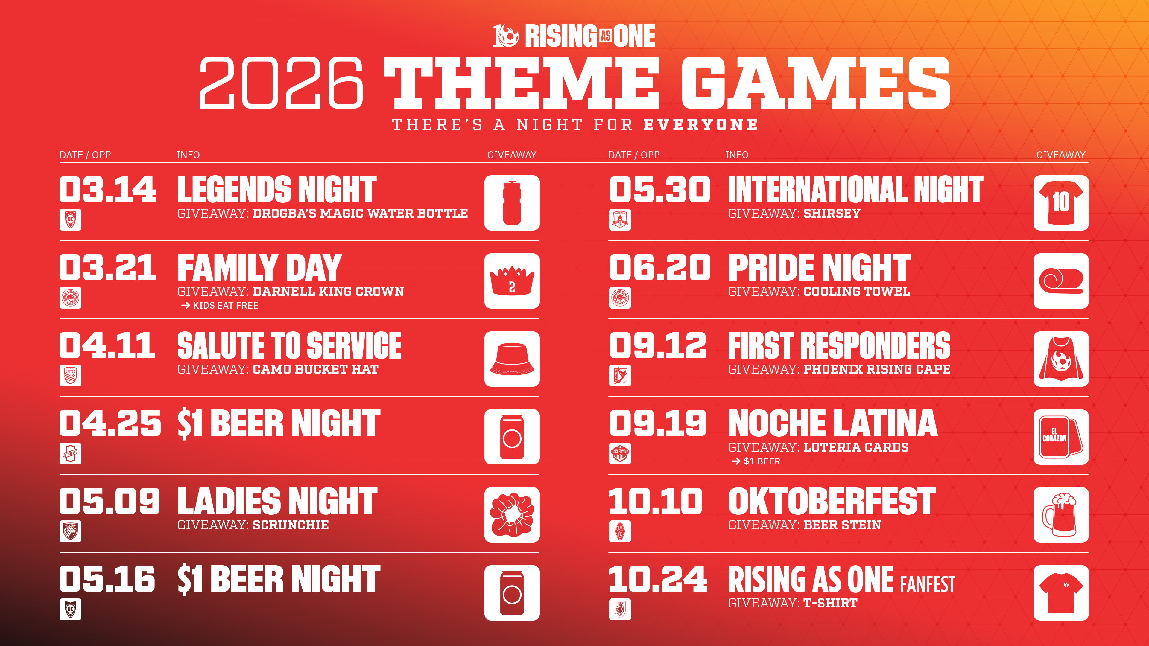 Receive weekly updates with club news, matchday information, merchandise deals, and more! Subscribe to the Phoenix Rising newsletter for free!