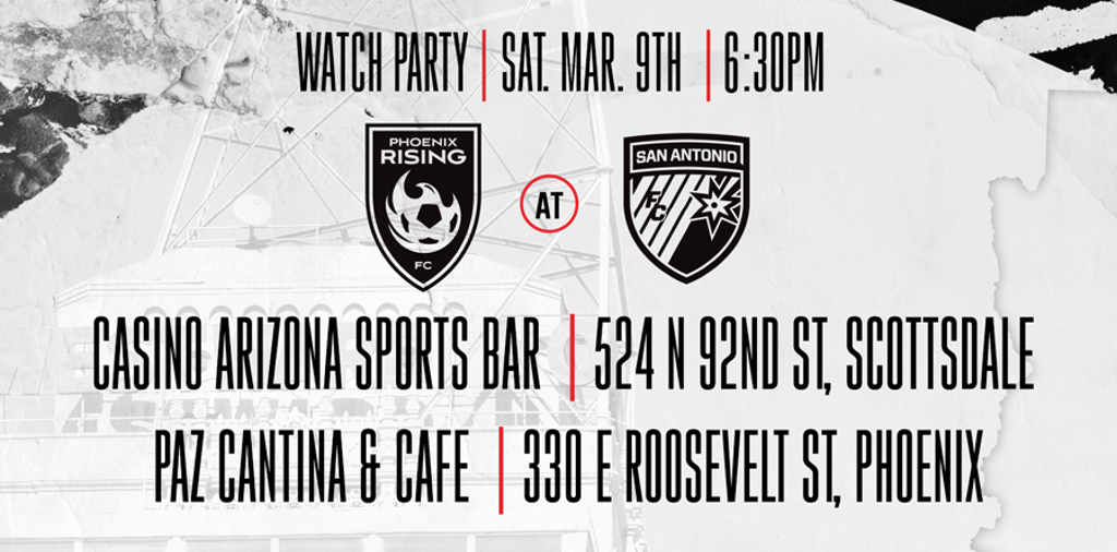Next Saturday night Phoenix Rising kicks off its 2019 campaign by traveling to San Antonio to square up with San Antonio FC. And that means we have TWO watch parties for the match!